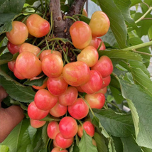 樹姿半開張,萌芽力、成枝力強易成花,豐產(chǎn);果實心臟形,黃底紅暈,果皮光亮,果柄中長,平均單果重13克;齊早